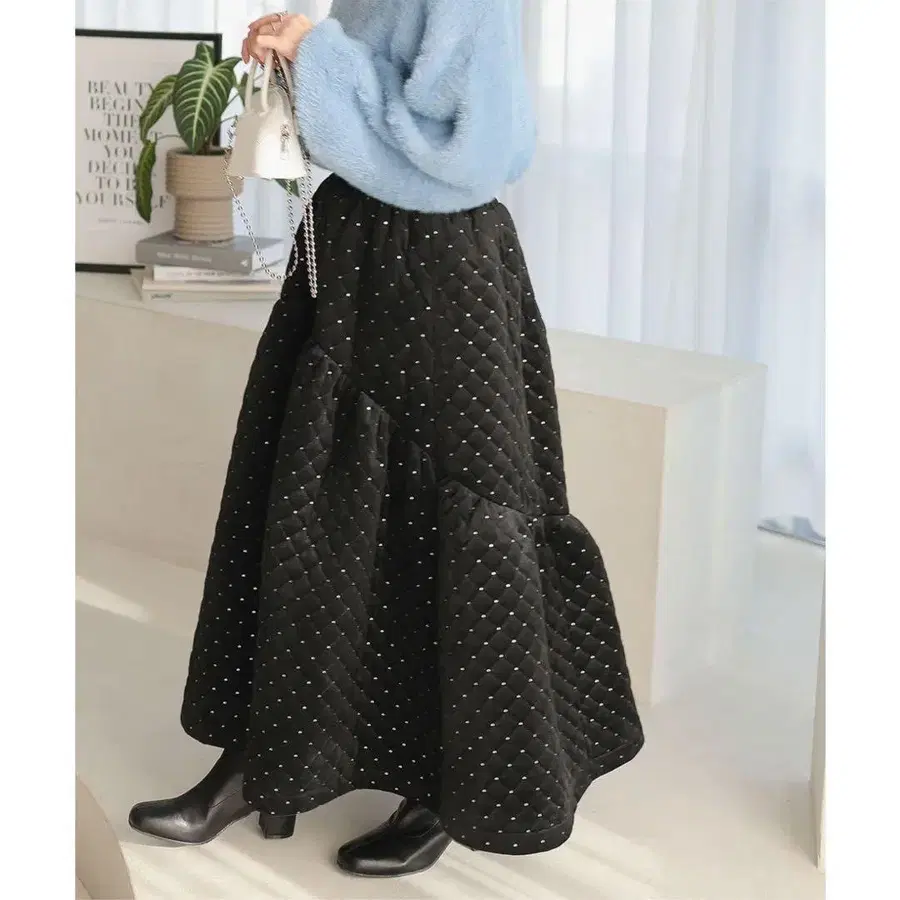 [ 새상품급 ] 고베 레터스 블랙 퀼팅 플레어 스커트