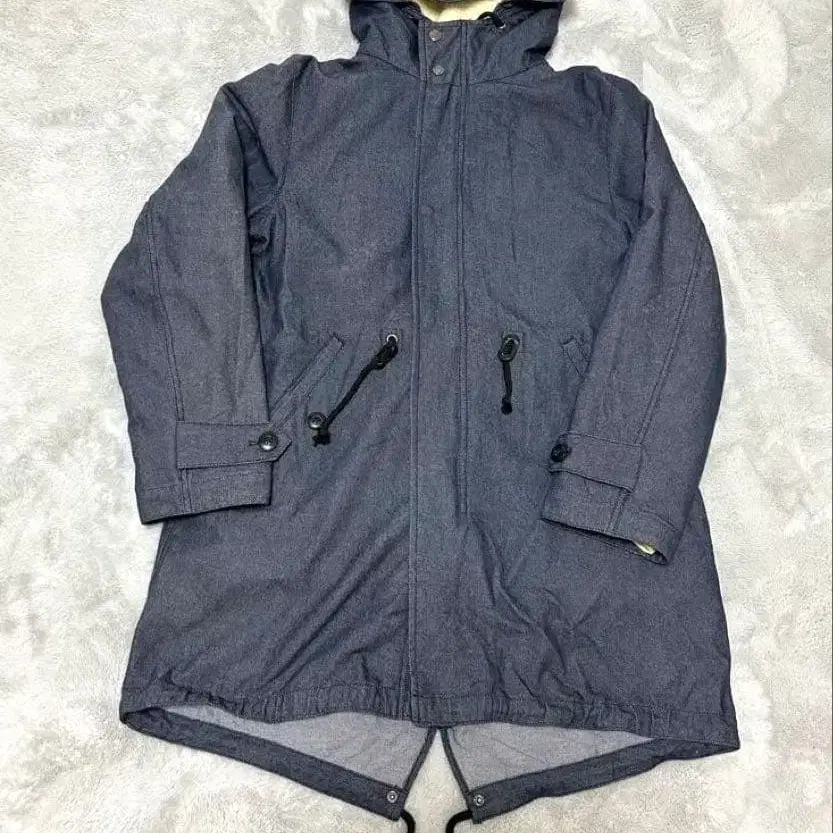 COMME CA COMMUNE (꼼 사 커뮨)의 데님 원단 후드 부착 모즈 코트입니다.