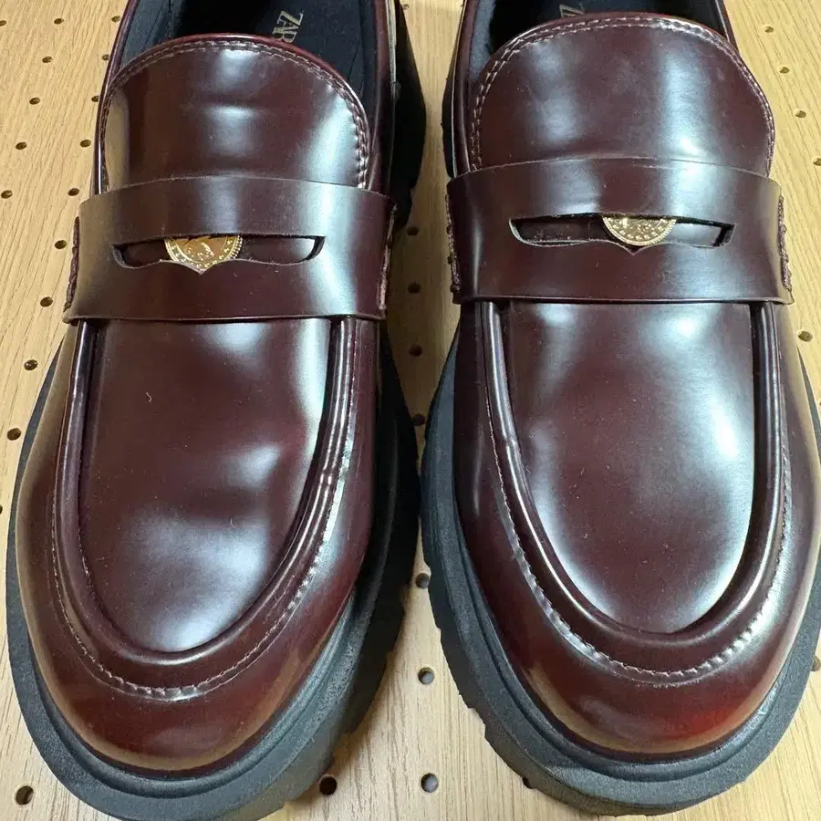 새상품급 ZARA 다크 브라운 통굽 코인 로퍼