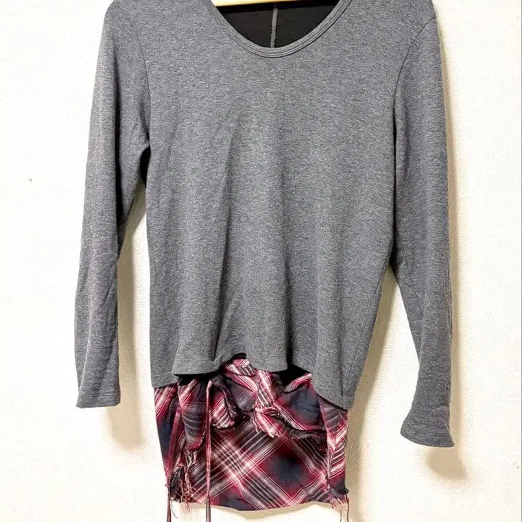 셀락 티셔츠 그레이 x 빨간색 체크 사이즈 44 SHELLAC