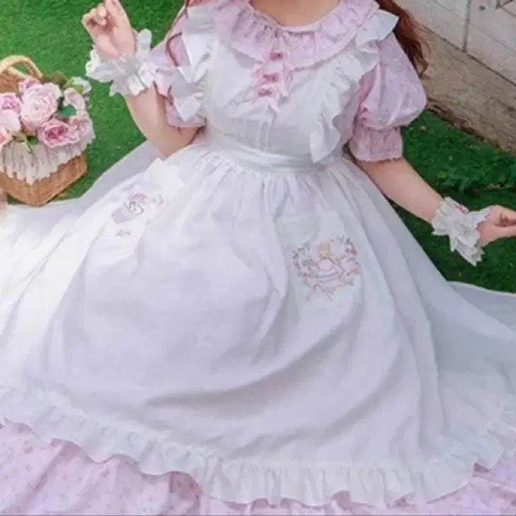 chalmiere 마롱 크림 원피스 에이프런 핑크
