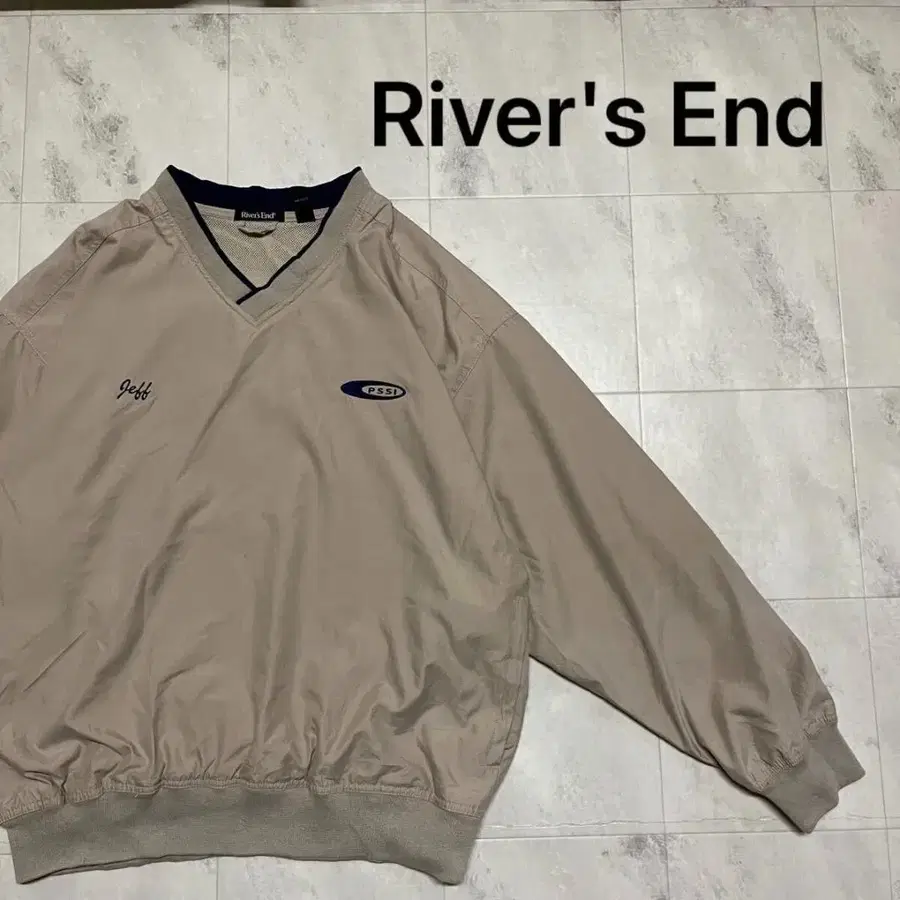 River's End 리버즈 엔드 나일론 자켓 바람막이 풀오버 기업 로고 자수 로고 메쉬 안감 아메카지 스트릿 USA 기획 V넥 베이지 사이즈 L玉ya1090