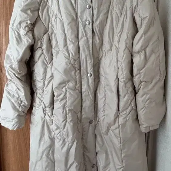 베이지 후드 부착 롱 다운 자켓