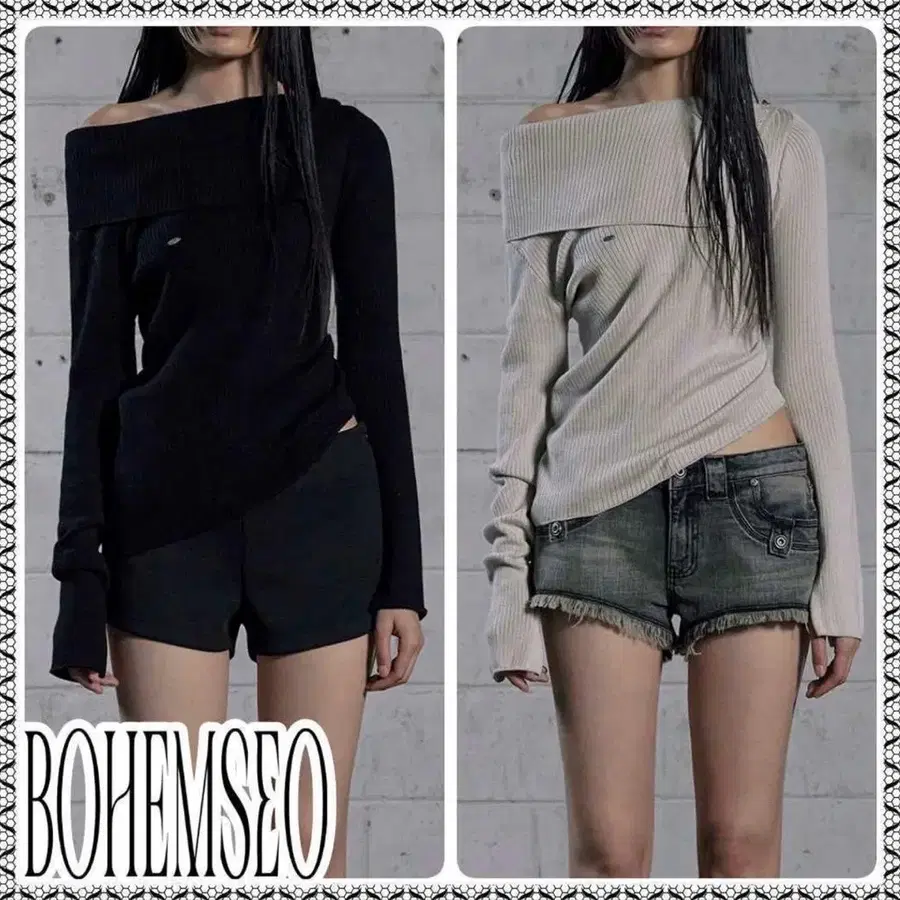 보헤미안 서울 원숄더 니트 터틀넥 상의