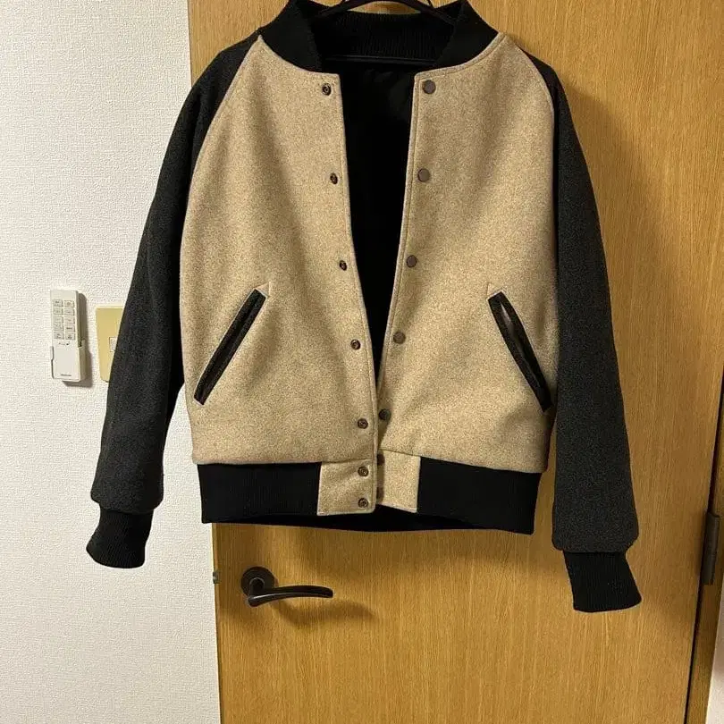 바시티 자켓 베이지/블랙 리버서블