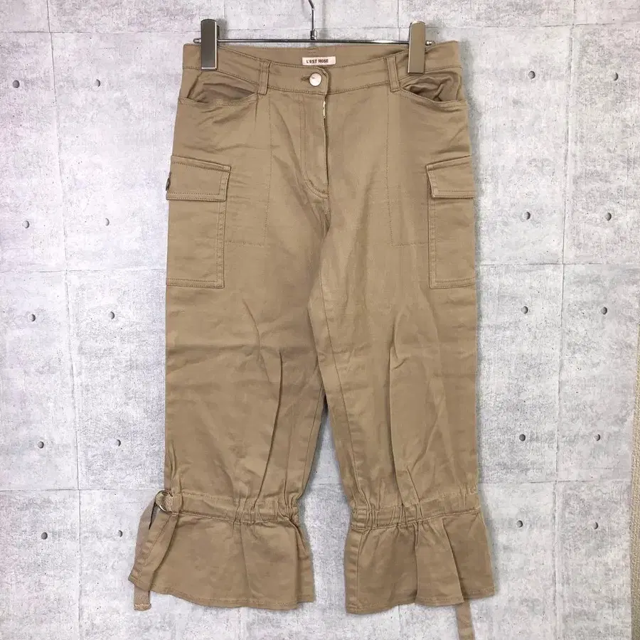 레트로 L'EST ROSE 끈 레이스 트리밍 밑단 프릴 크롭 카고 팬츠