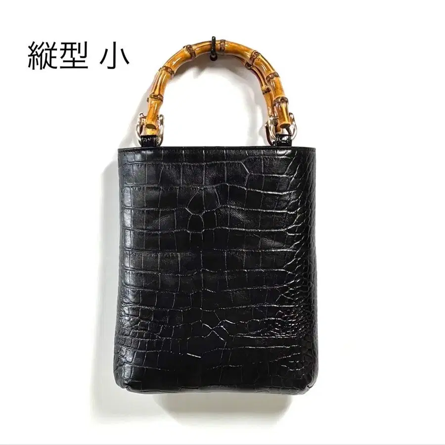 소가죽 악어 엠보싱 대나무 토트백 (소) 블랙 신여 축제 대나무 핸드백
