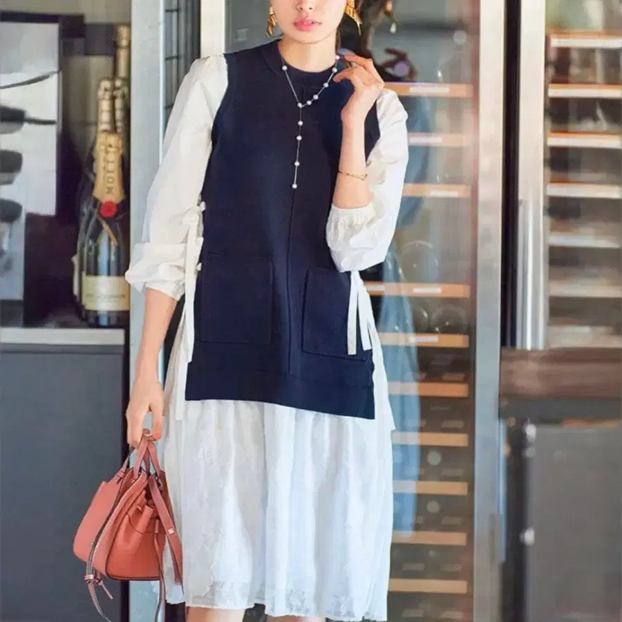 • michell Macaron 니트 베스트 셔츠 도킹 원피스