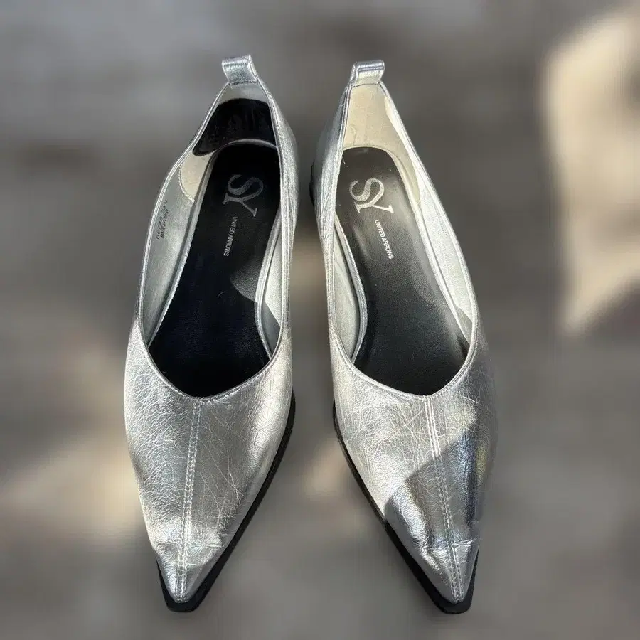 SY UNITED ARROWS 실버 스틸레토 플랫슈즈