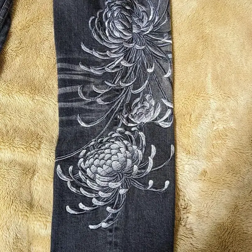 피안화 청바지 데님 자수 스트레이트 꽃무늬