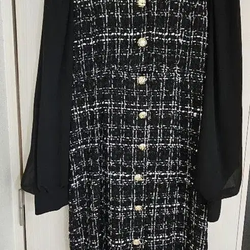 로얄 파티 트위드 체크 무늬 원피스 긴팔