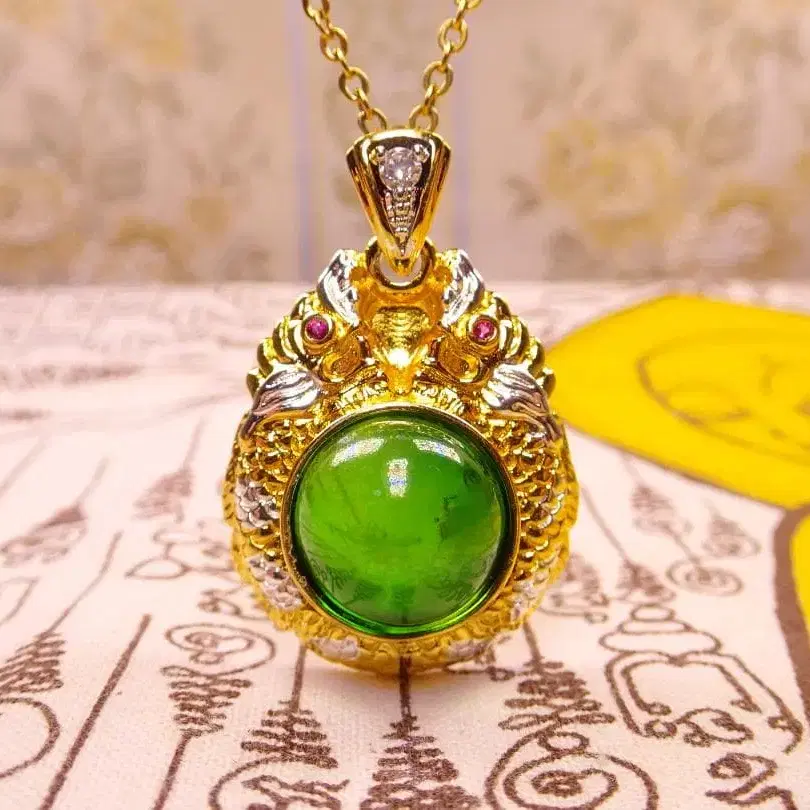 용의 보주 목걸이 금 도금 그린 컬러 태국 부적 프라크루앙