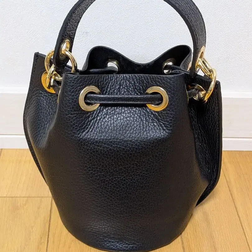 블랙 가죽 버킷형 핸드백