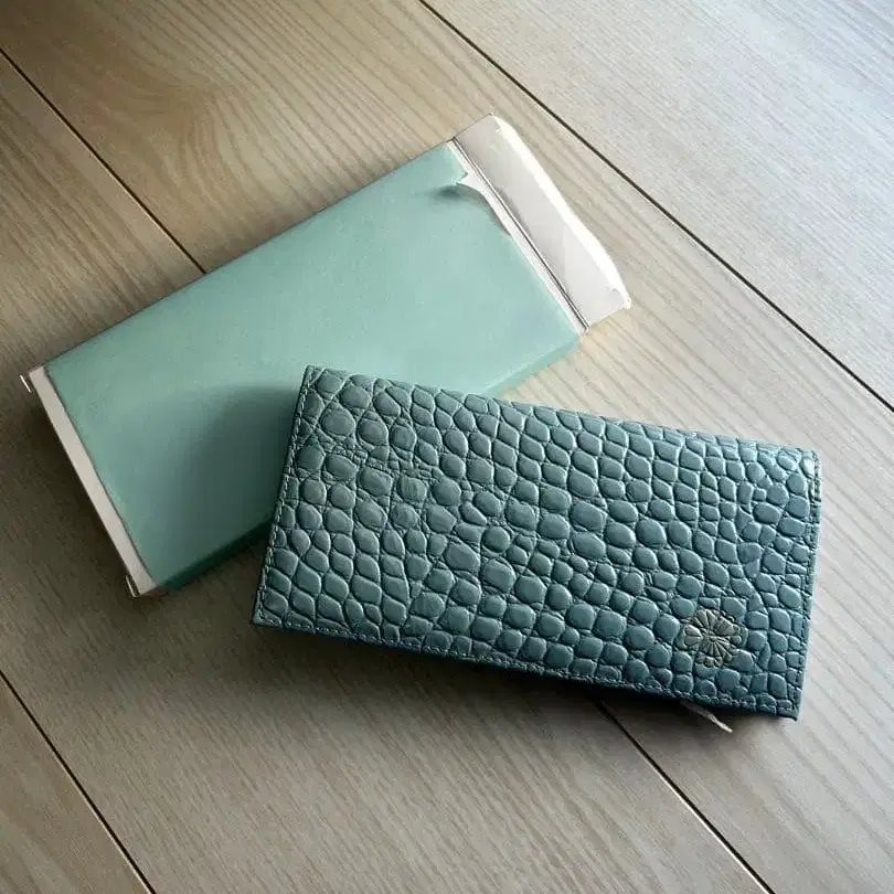 미사용 새상품 황궁 악어 엠보싱 장지갑 소가죽 블루