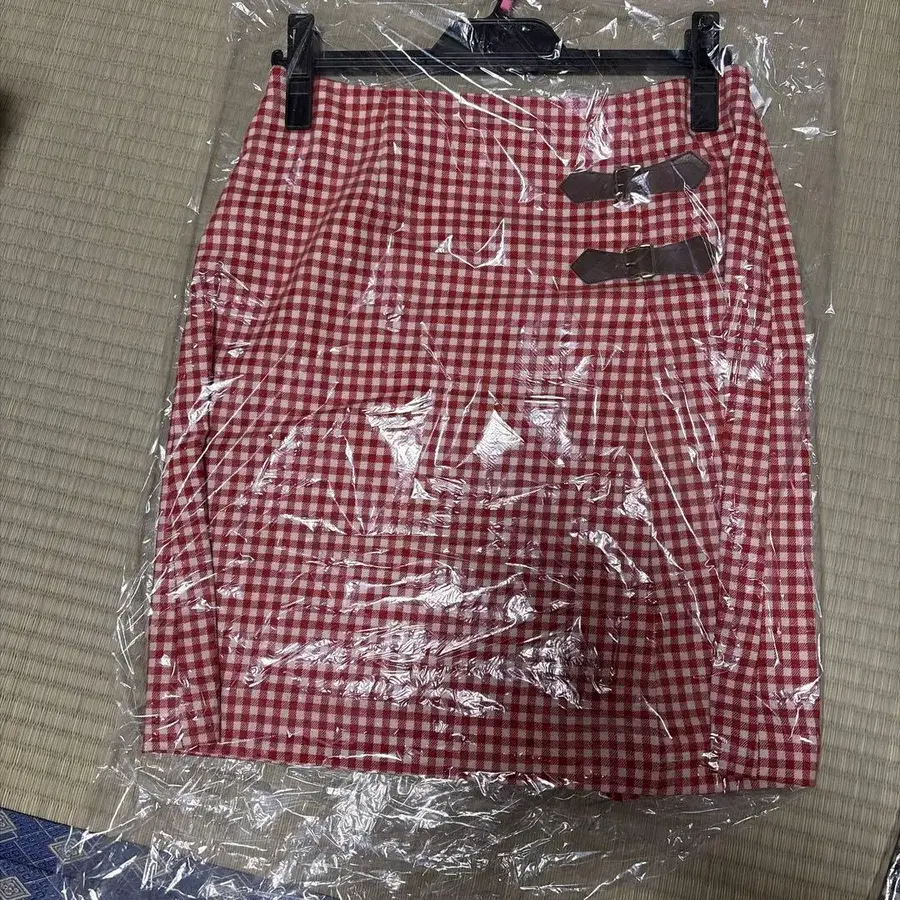 빨간색 체크 무늬 타이트 스커트 허리 67cm