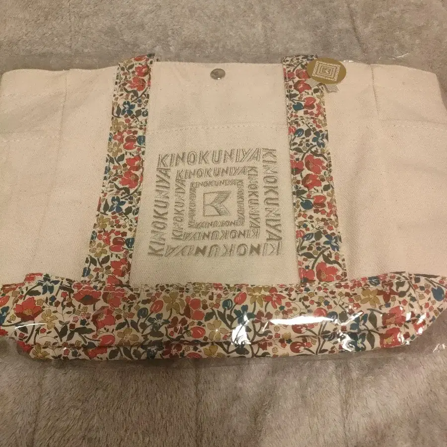 택 포함 새상품 키노쿠니야 리버티 프린트 코튼 토트백 내추럴