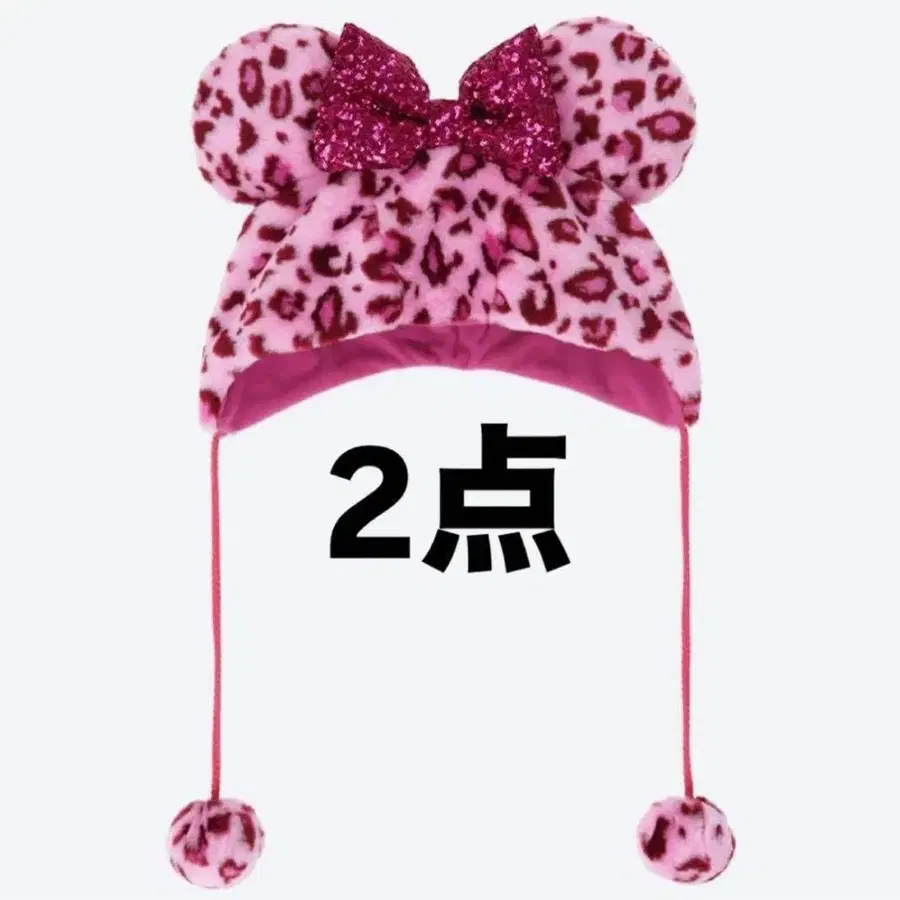 택 포함 미사용 새상품 미니 팬캡 2세트 핑크 표범 무늬 디즈니