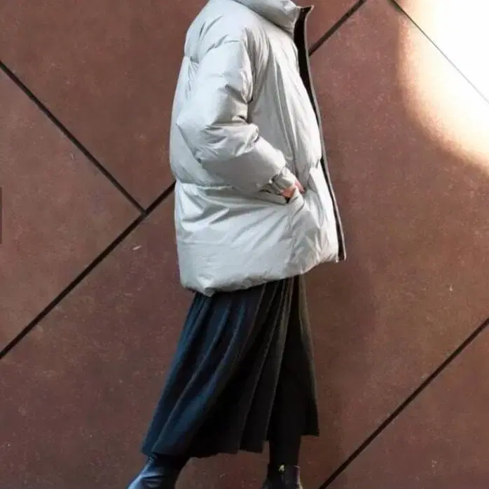 길이는 착용자 162cm 기준으로 엉덩이를 완전히 덮고 허벅지까지 내려와 일상생활에서의 방한 기능은 충분했습니다. (착용컷은 신장 정보가 없습니다.)