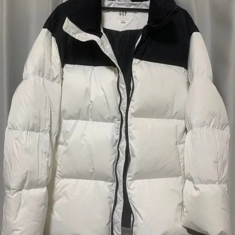 GAP 후드 부착 다운 자켓 화이트/블랙