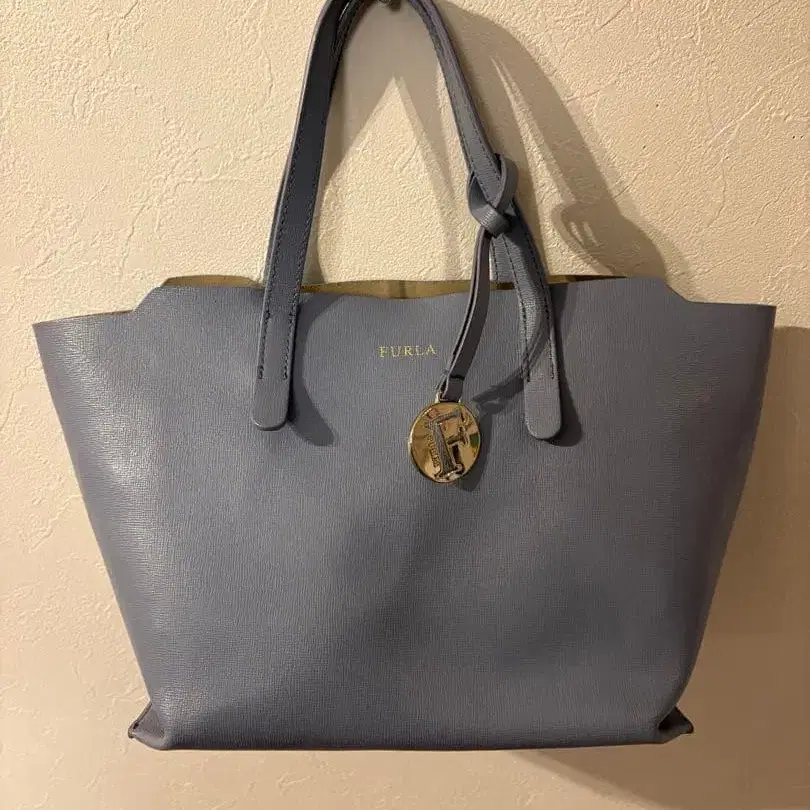 새상품급 FURLA 그레이 블루 가죽 토트백 천 가방 포함
