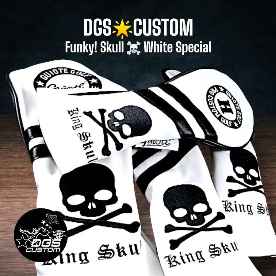 Funky!! 킹스컬 화이트 드라이버 골프헤드커버 4세트