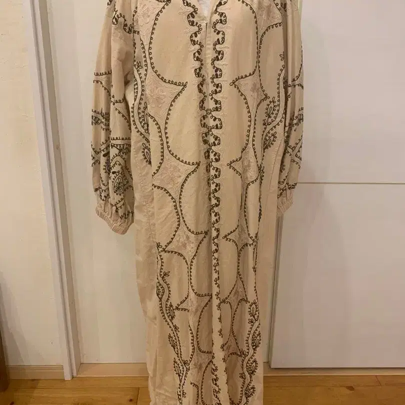 자수 들어간 베이지 롱 원피스