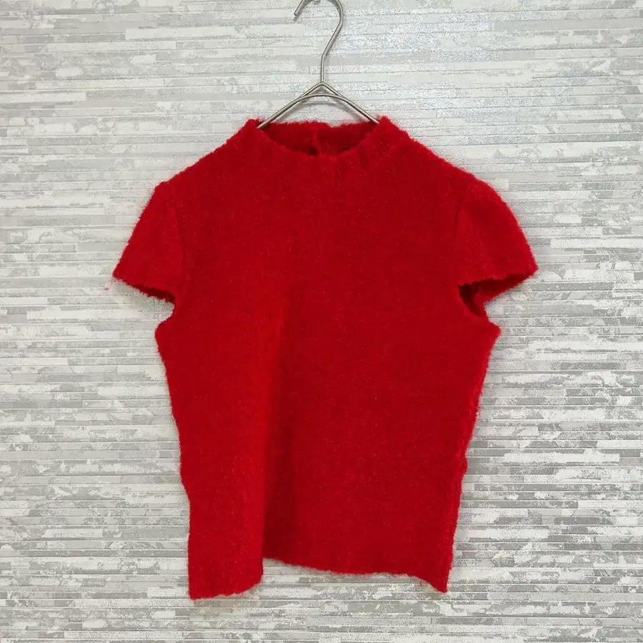 바디 드레싱 반팔 니트탑 레드 M 숏 기장