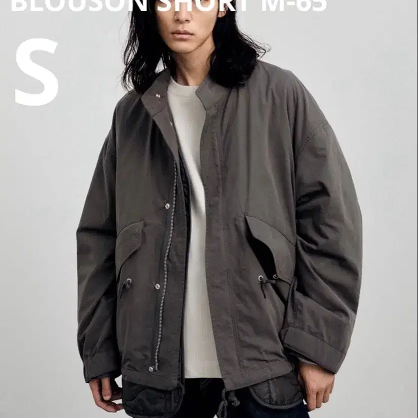 DESIGN [ M-65 모즈 코트를 블루종으로 과감하게 어레인지한 레이어드 3WAY 밀리터리 아우터 ] M-65의 오센틱한 사양 등은 계승하면서도, 밑단의 겨드랑이에 개더를 넣어 둥근 형태를 만들거나, 의도적으로 라이너를 아우터보다 길게 설정한 레이어드 디자인 등, 지금의 기분을 담은 블루종으로 승화. 라이너도 단품 착용을 상정하여, 부해 보이지 않도록 패턴 설계를 아우터와는 의도적으로 과감하게 변경하여 이상적인 실루엣을 추구. FABRIC [ 빈티지 M-65의 소재를 충실히 재현한 코튼 나일론 옥스퍼드 소재 ] 밀리터리 아이템 유래의 코튼 나일론의 튼튼함을 남기면서도, 소재 표면에 미세 기모 가공을 하여 적당한 드레이프가 나오는 부드러움으로 조정한 피치 소재. 라이너 소재는 의도적으로 극세번수 폴리에스테르사를 느슨하게 짠 부드러운 립스탑을 개발. 라이너 단품으로 착용 시 부해 보이지 않도록, 소재와 패턴의 밸런스가 치밀하게 계산된 디자인. 사이즈 상세 정보 아우터: 기장 67 어깨 64 몸의 폭 68 소매 길이 54 라이너: 기장 72 어깨 59 몸의 폭 62.5 소매 길이 56 추천 사이즈 사이즈 S : 신장 ~170cm 컬러 - 그린 패턴 디자인 - 무지 지퍼 버튼 - 집업 라이너 - 라이너 탈부착 가능 후드 - 후드 없음 계절감 - 봄, 가을, 겨울