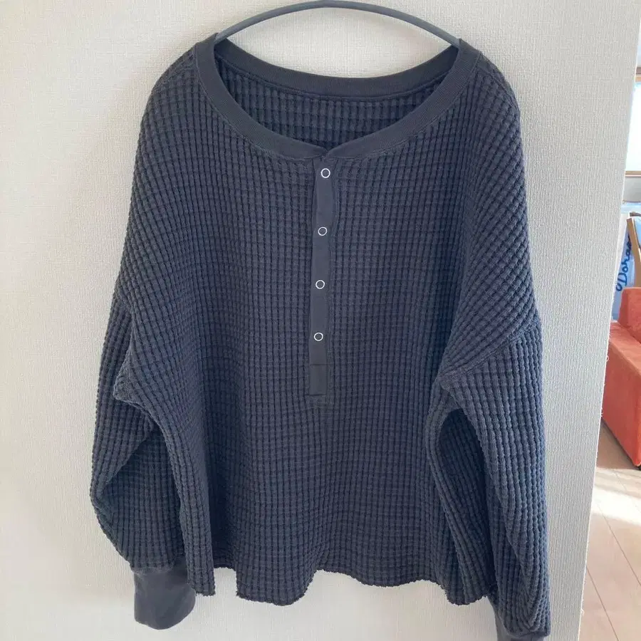 다크 그레이 와플 짜임 7부 소매 티셔츠