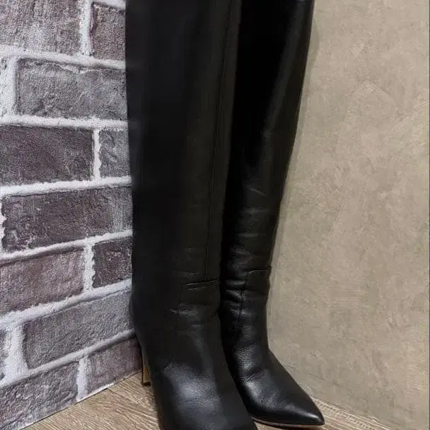 블랙 가죽 롱 부츠