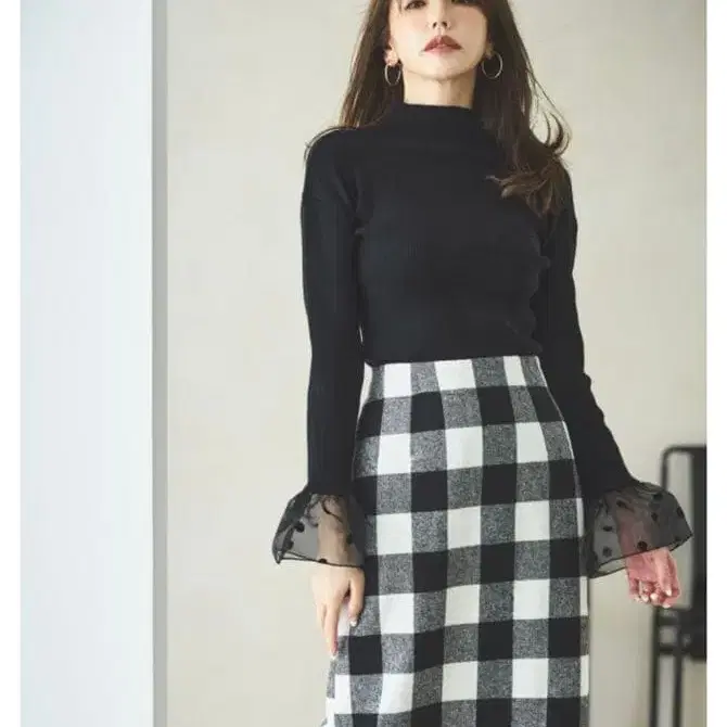 노스탤지어 NOSTALGIA 미카 씨 콜라보 블록 체크 타이트 스커트