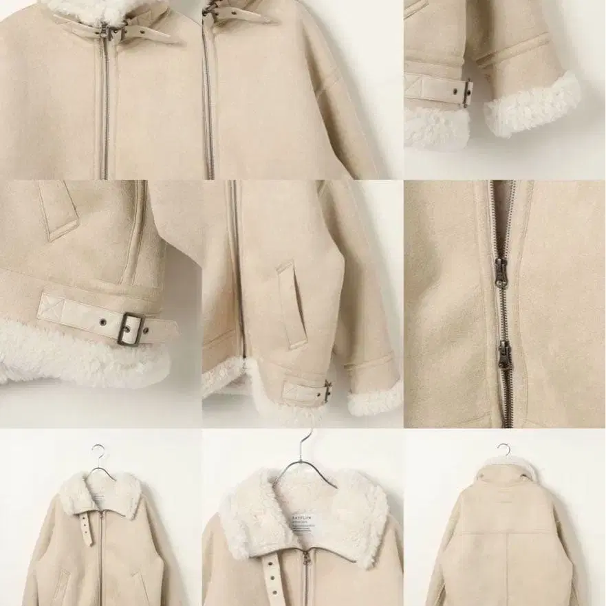 뒷면은 캐주얼한 털이 있는 보아, 표면은 가죽처럼 엠보싱 프린트를 하고, 페이크 스웨이드를 사용한 무스탕 소재.