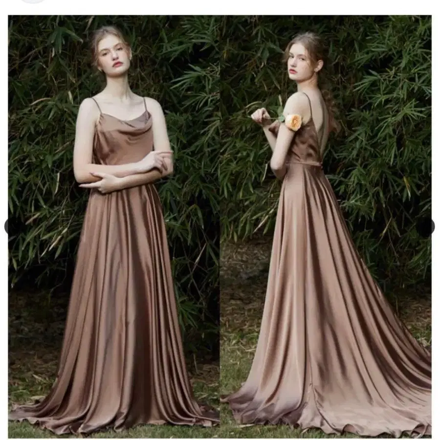 드레스 프로덕션 브라운 새틴 드레스 싸개 버튼 M