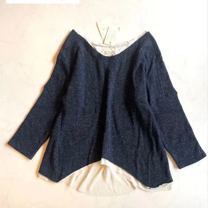 택 포함 BonVieuxTemps 레이어드 풀오버 울 린넨