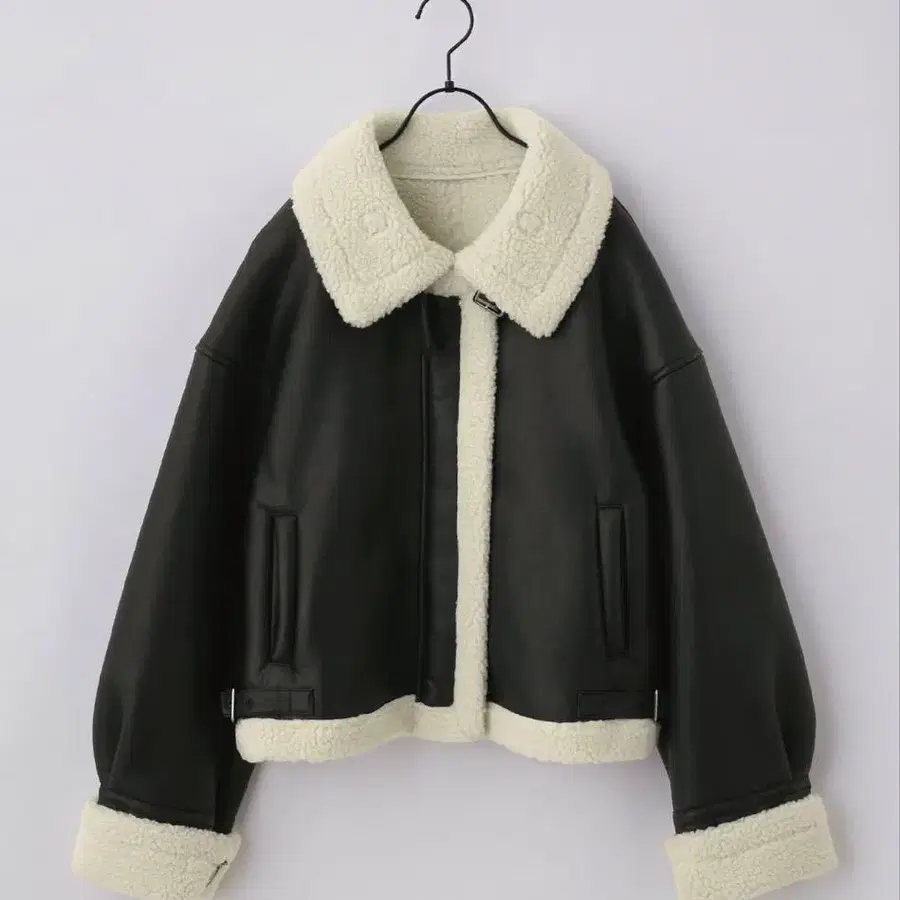 2WAY 숏 무스탕 자켓 블랙 x 아이보리