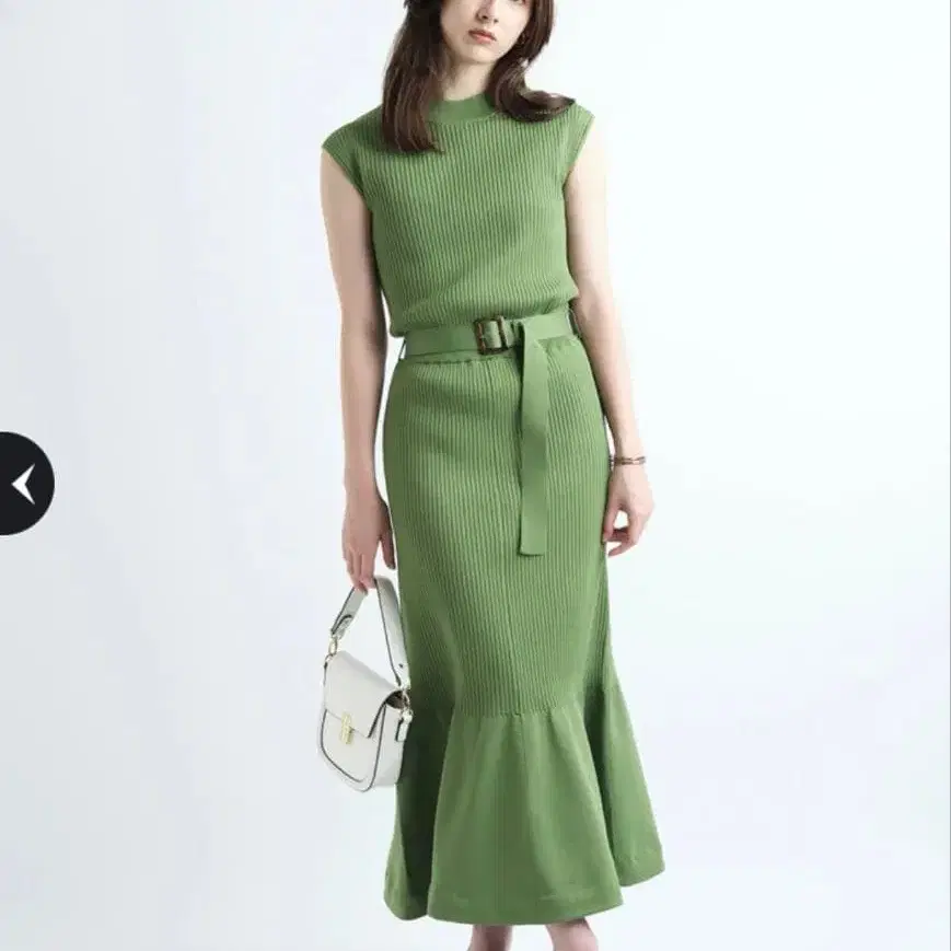 마이 스트라다 리브 니트 슬리브리스 원피스 그린