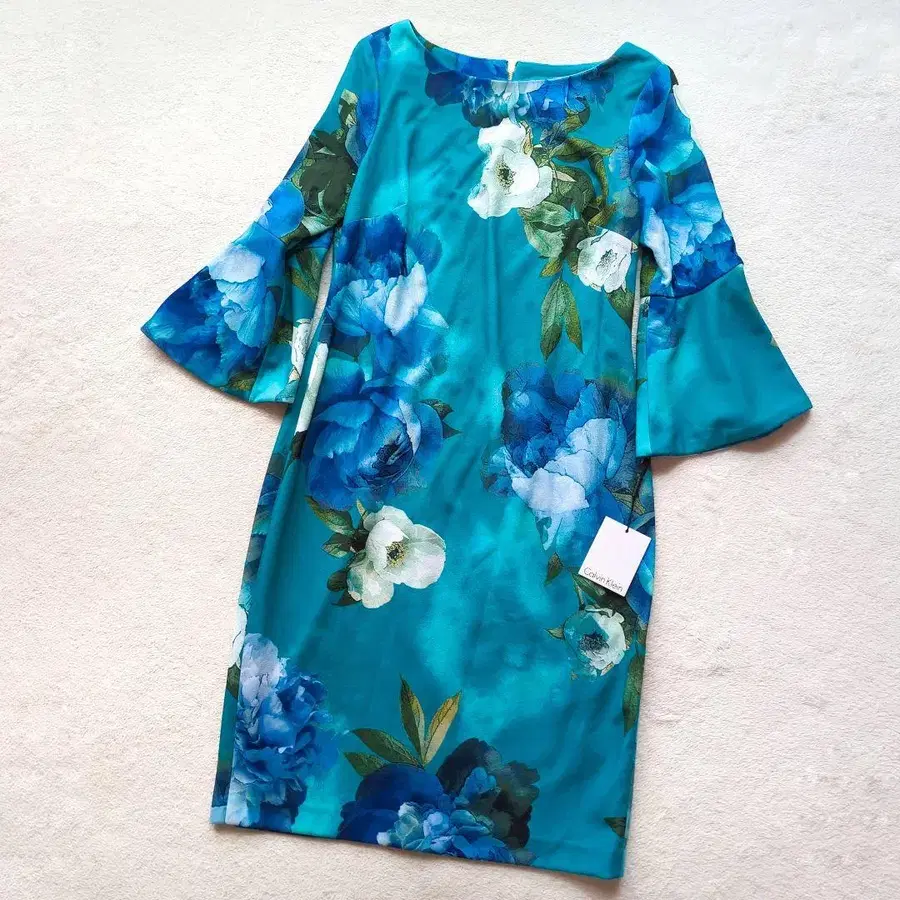 택 포함 캘빈클라인 꽃무늬 플레어 슬리브 원피스 XL