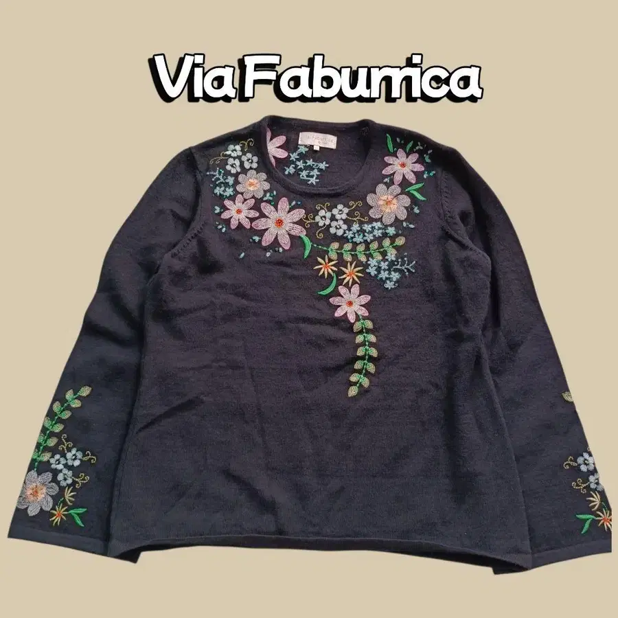 via Faburica 플라워 꽃무늬 자수 긴팔 니트 블랙 프리 사이즈