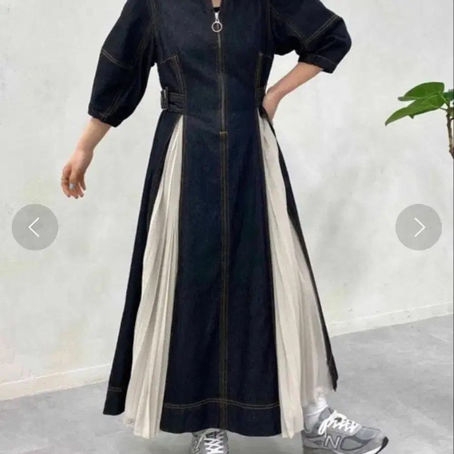 [ CPCM ] 데님 x 플리츠 5부 소매 원피스