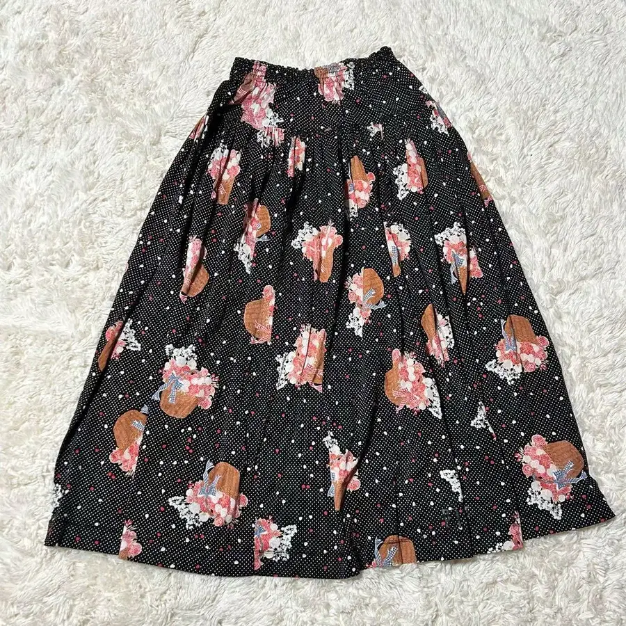 새상품급 핑크하우스 PINK HOUSE 꽃무늬 도트 플레어 스커트 블랙