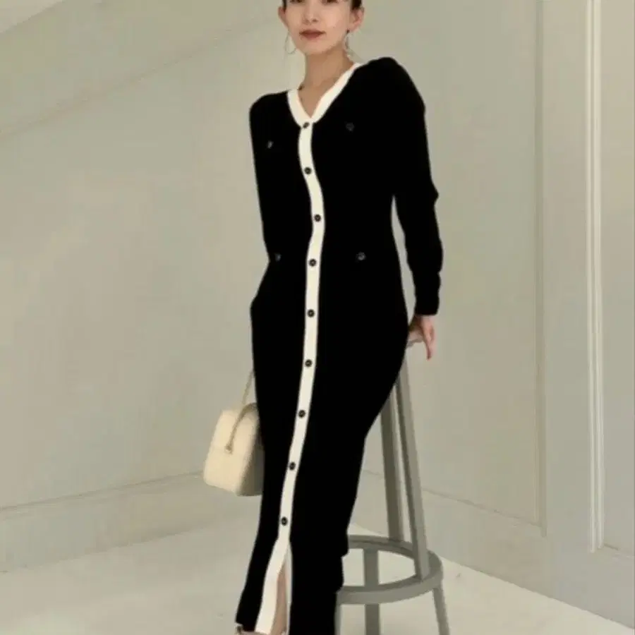 snidel 프론트 버튼 니트 원피스