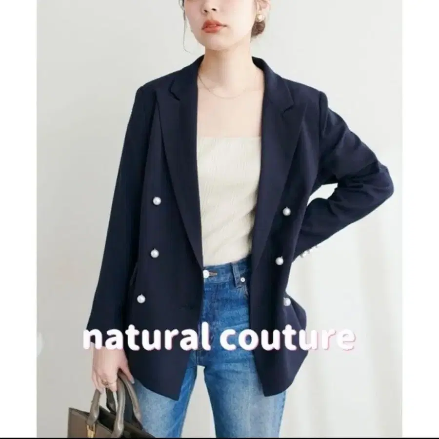 새상품급 내추럴 꾸뛰르 osono 펄 버튼 테일러드 자켓 네이비