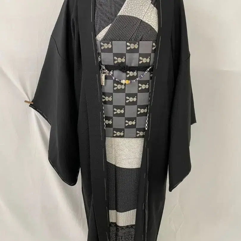 미사용 새상품 순수 실크 이중 기모노 문양 디자인 긴 겉옷