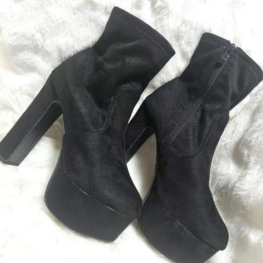 블랙 스웨이드 하이힐 숏부츠