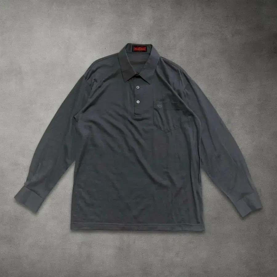 Austin Reed 긴팔 피케 셔츠 울 100% 차콜 L 구제 의류