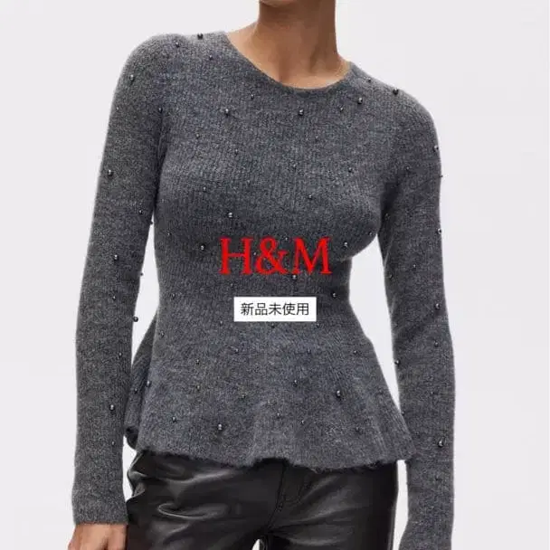 H&M 비즈 장식 그레이 니트 스웨터 M