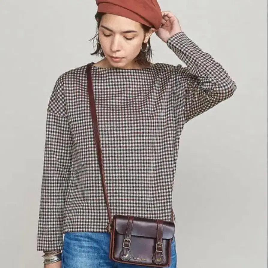 BEAUTY&YOUTH 간체크 보트넥 풀오버 일본제