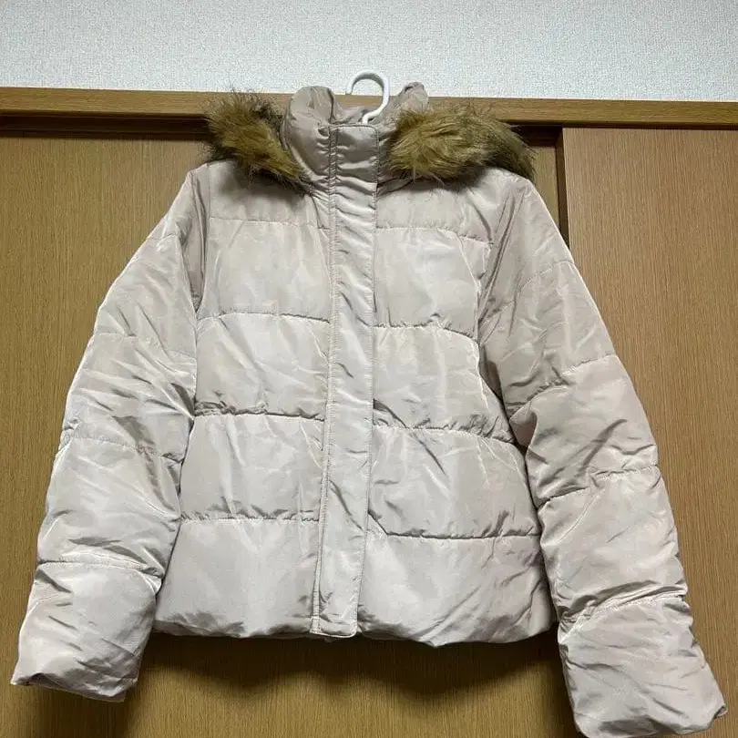 베이지 다운 자켓 여성용 후드 부착 퍼 부착 INGNI