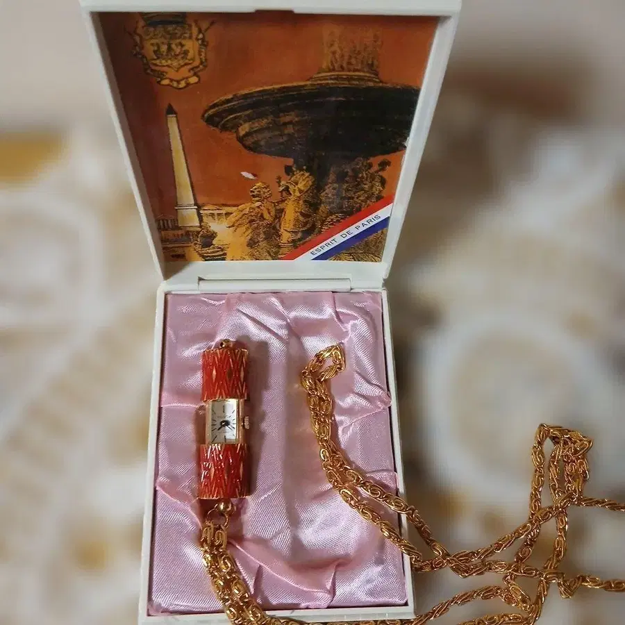 레드 계열 장식 시계 내장형 목걸이 ESPRIT.DE.PARIS