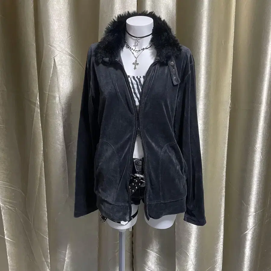 벨로아 자켓 인조 모피 시크 스타일 다크 y2k